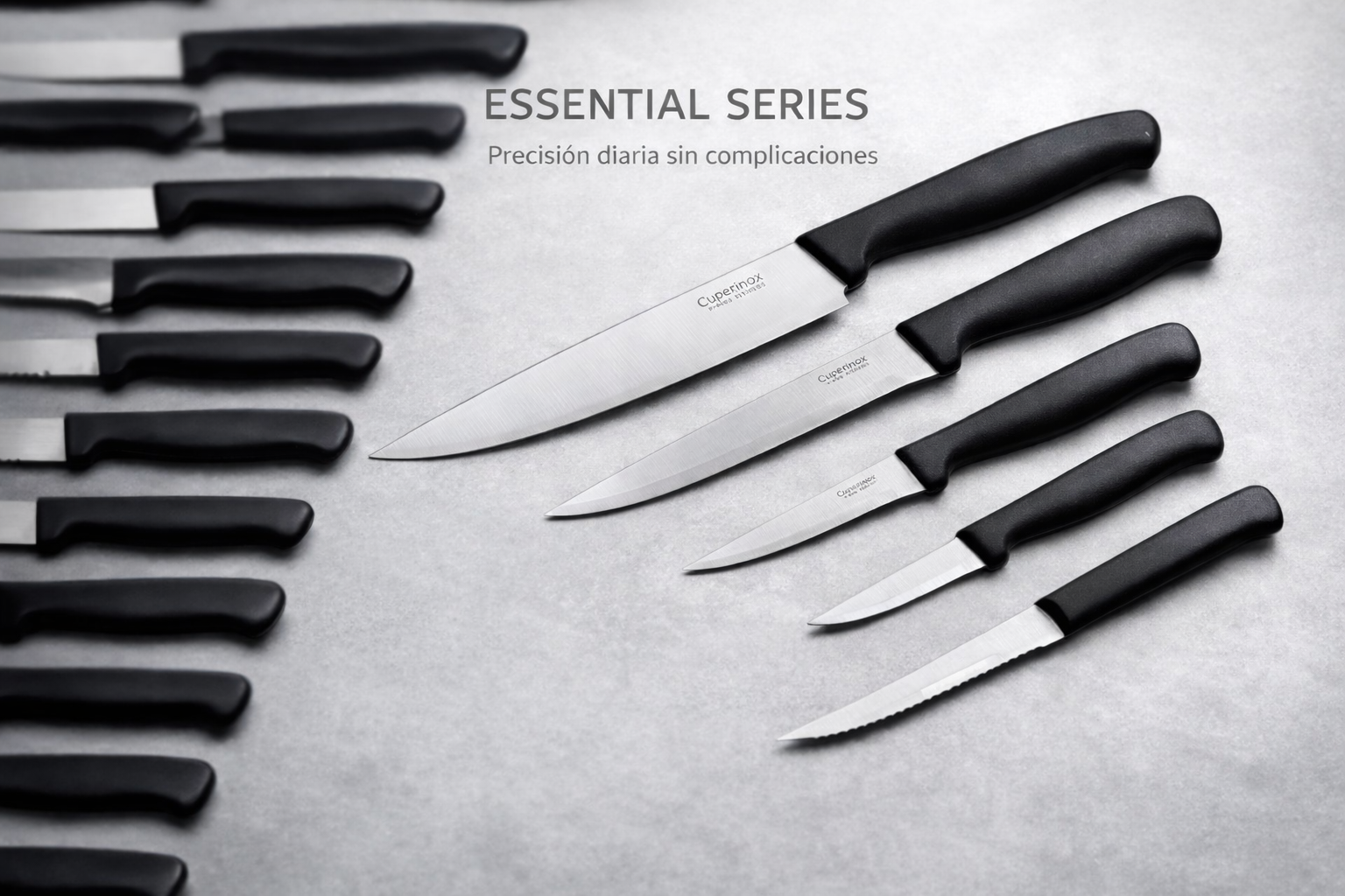La colección Essential Series de Cuperinox combina hoja de acero inoxidable y mango ergonómico de plástico resistente para ofrecer una opción práctica y funcional en el día a día.