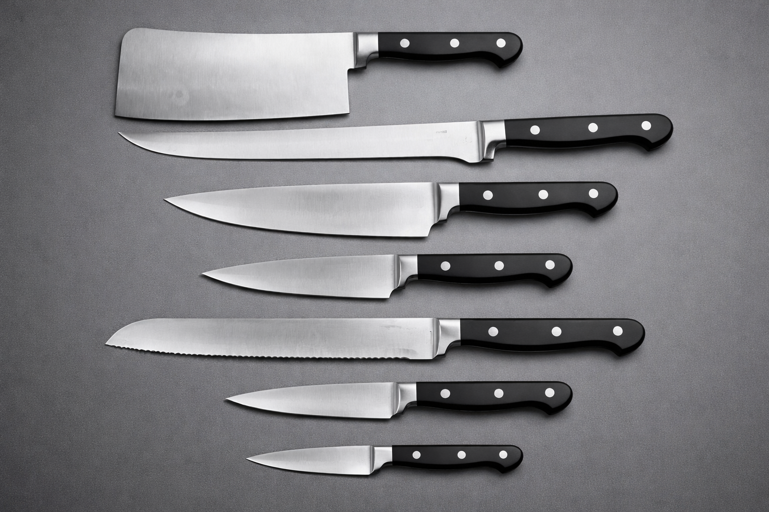 La colección de cuchillos forjados Classic Forge Line incluye modelos específicos para cada necesidad: macheta, cuchillo jamonero, cuchillo de cocina de diferentes tamaños, puntilla y cuchillo panero dentado. Cada pieza ha sido diseñada para proporcionar un corte limpio, preciso y seguro tanto en uso doméstico como en cocina profesional