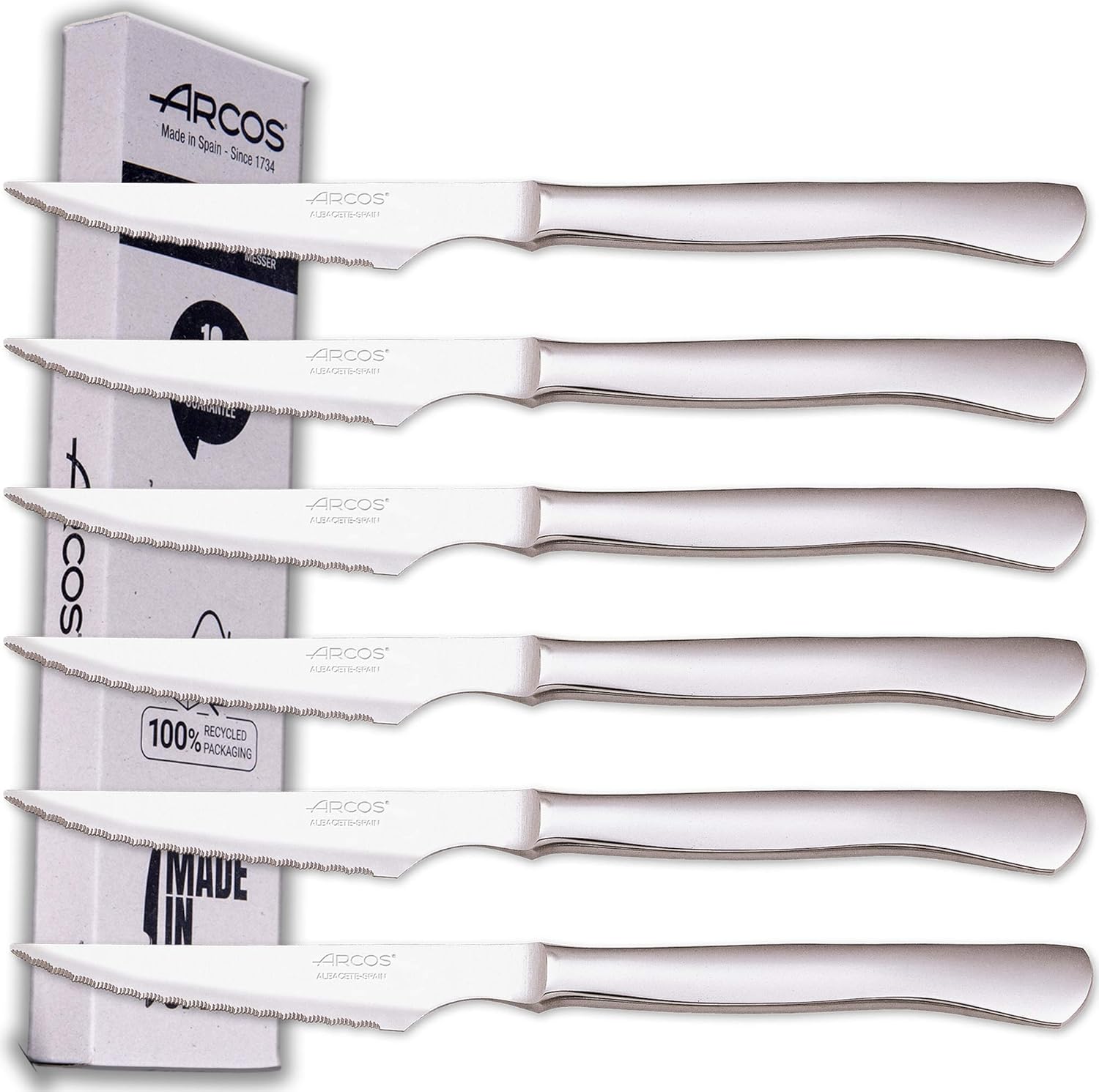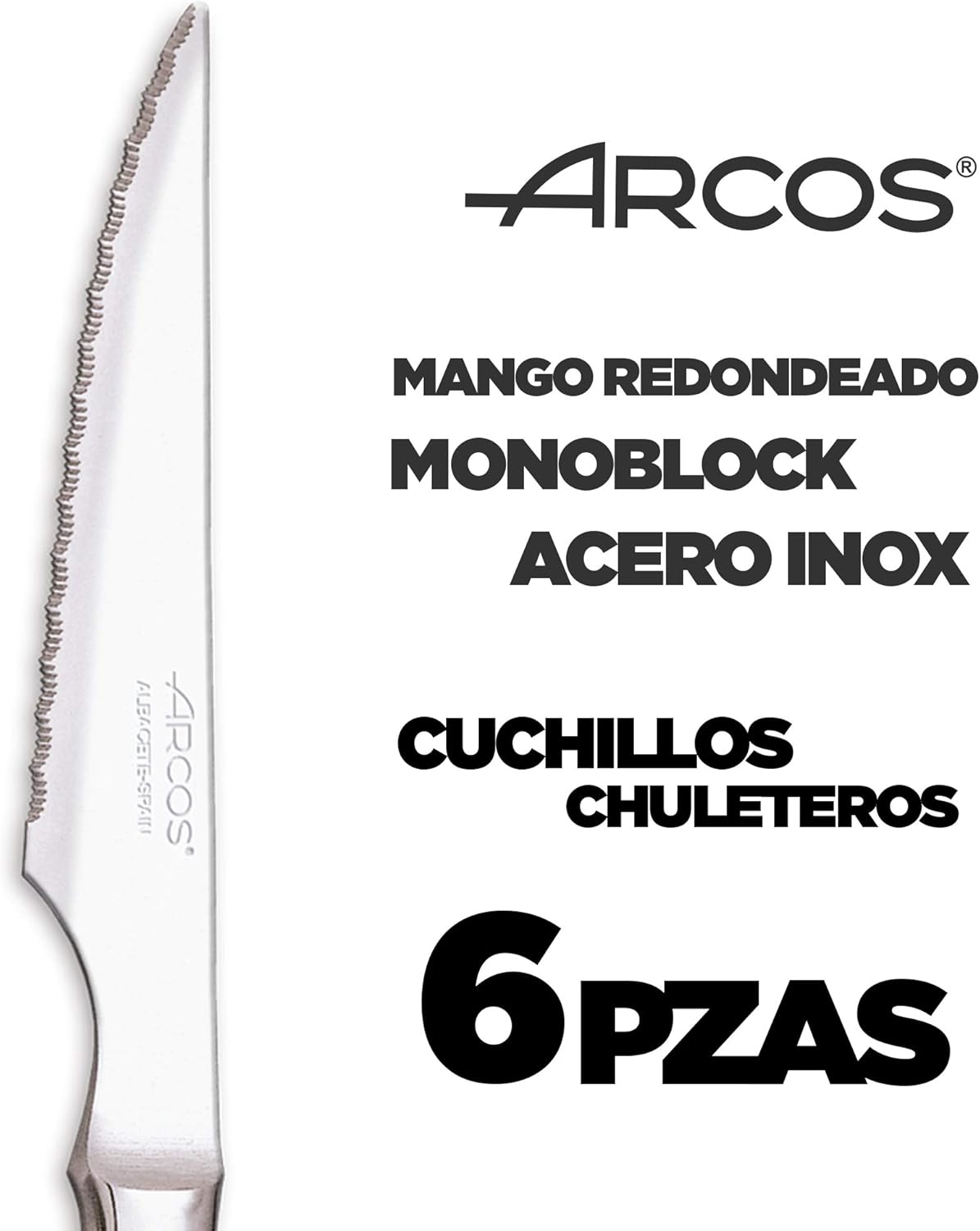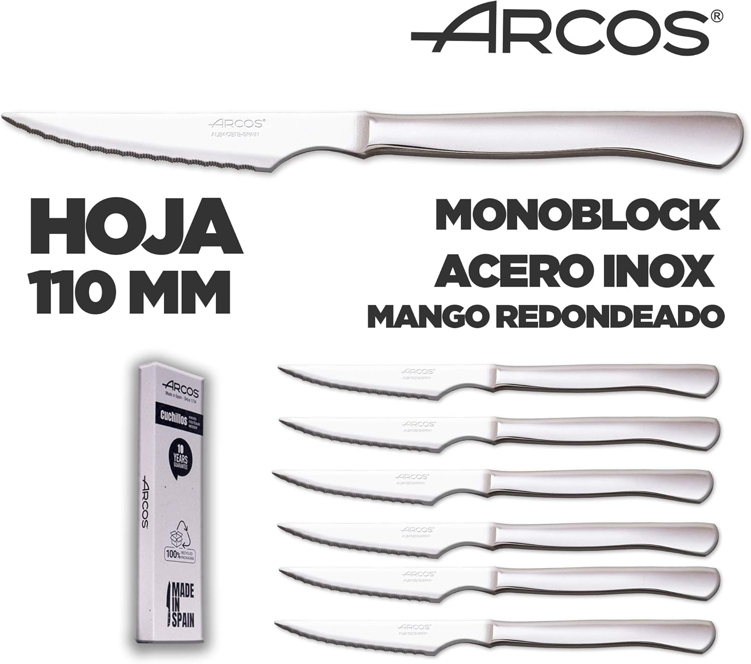 Cuchillos de carne ARCOS, juego de 6 cuchillos chuleteros monobloque de acero inoxidable