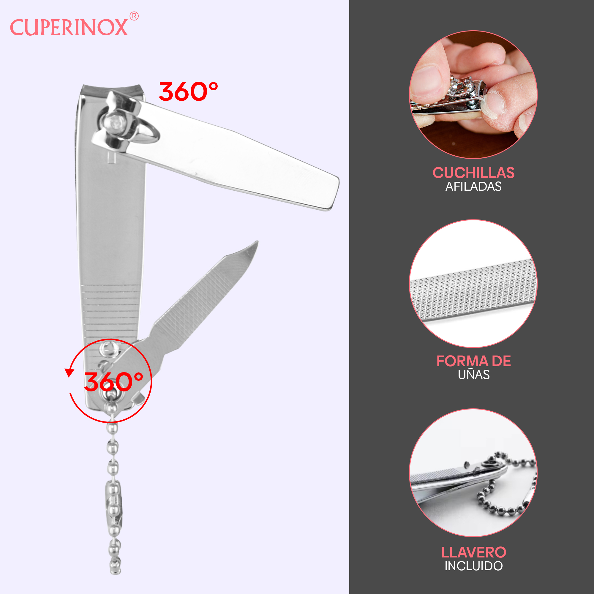 Componentes: 1 cortaúñas pedicuro + 1 cortaúñas mediano con llavero