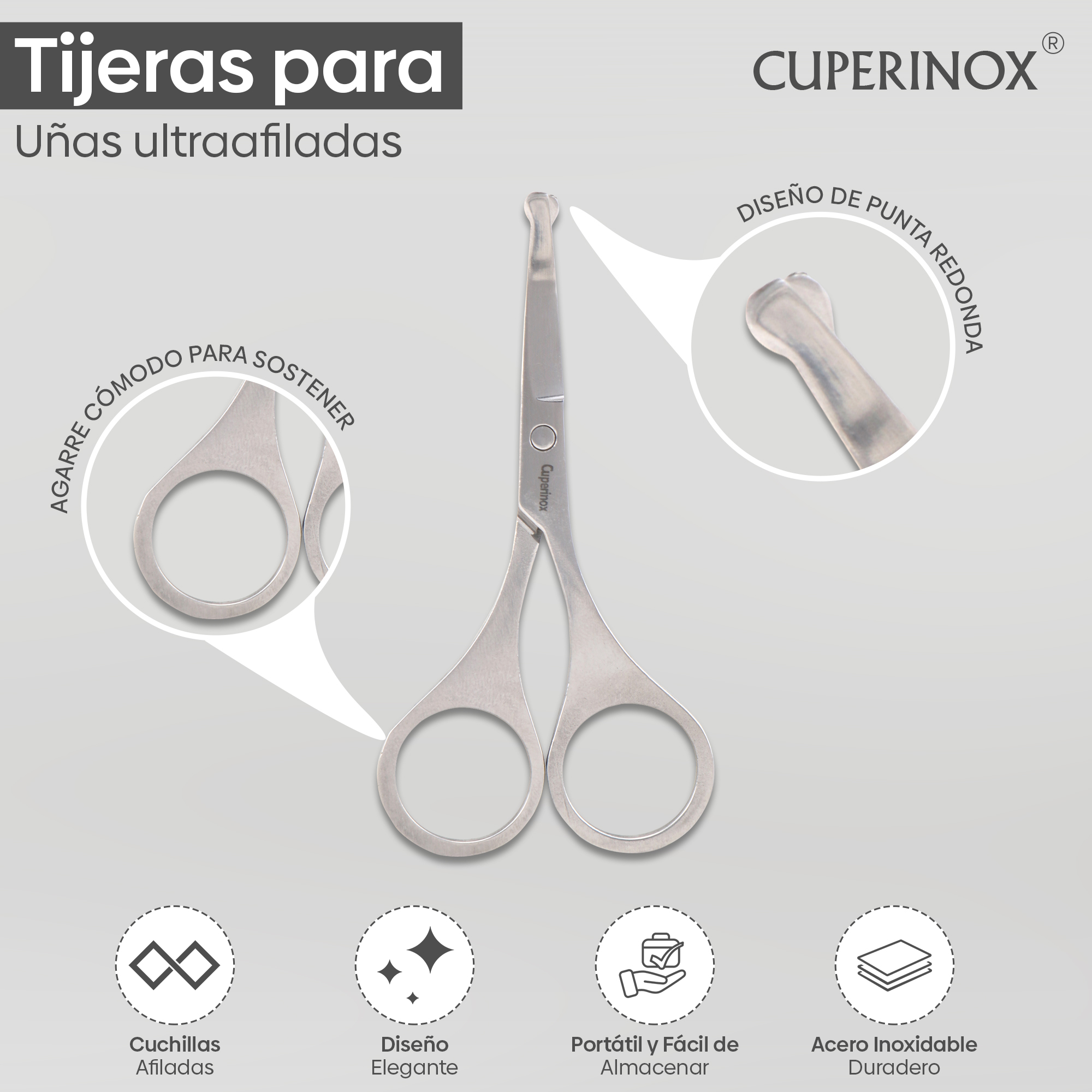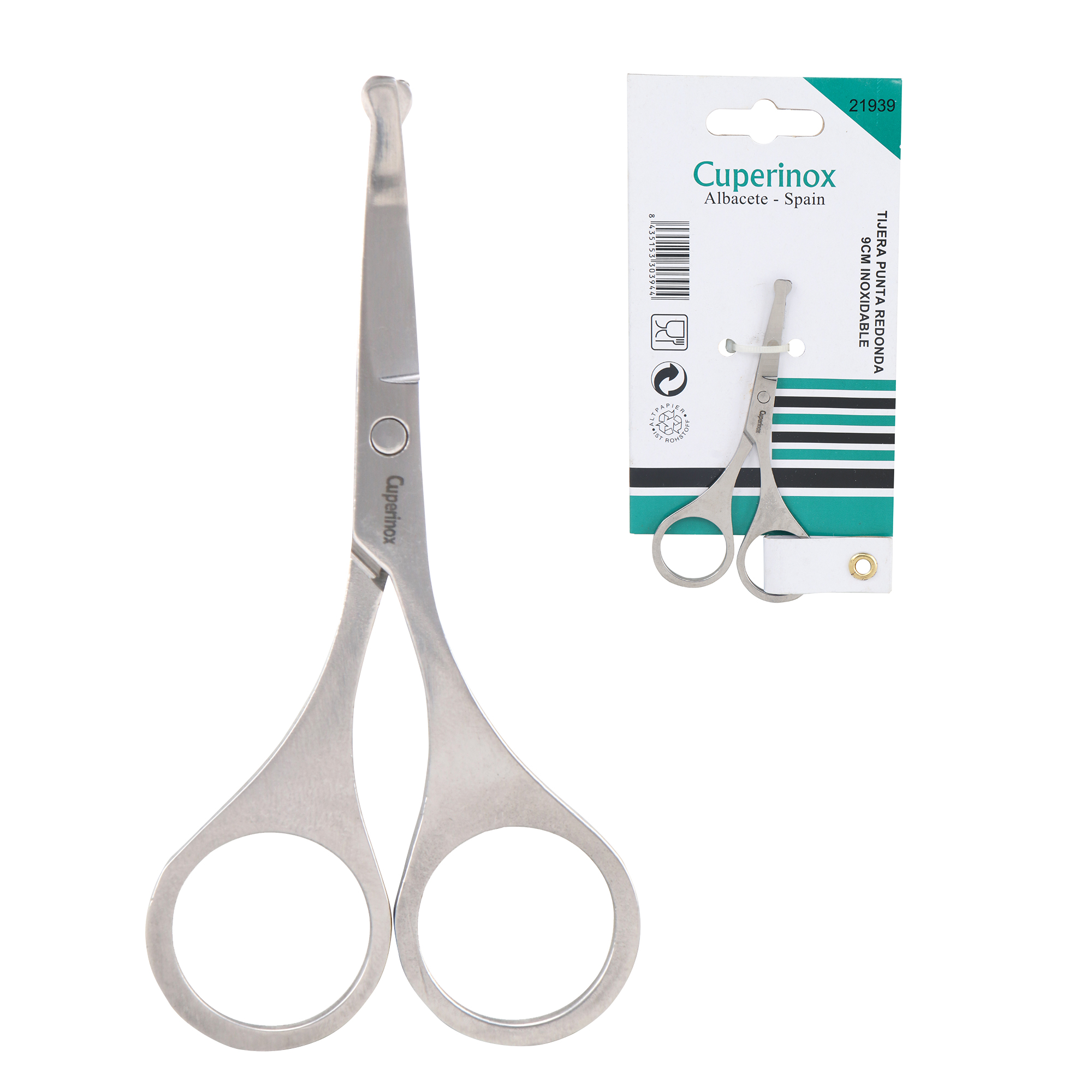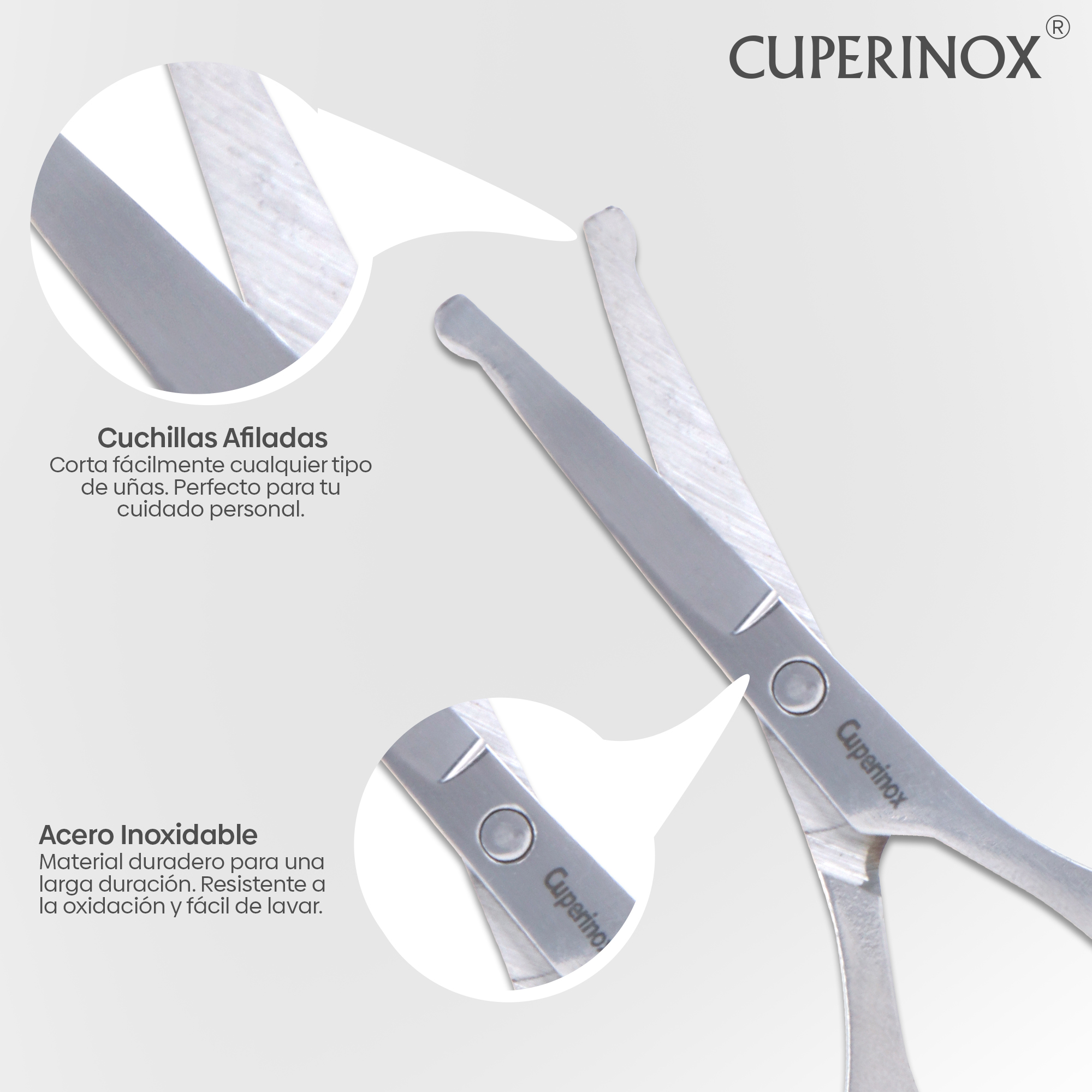 CUPERINOX Beauty Care – Tijera Punta Redonda para Manicura y Pedicura 9 cm | Acero Inoxidable Seguro | Recorta Uñas, Cejas y Vello Facial | Uso Profesional y Personal