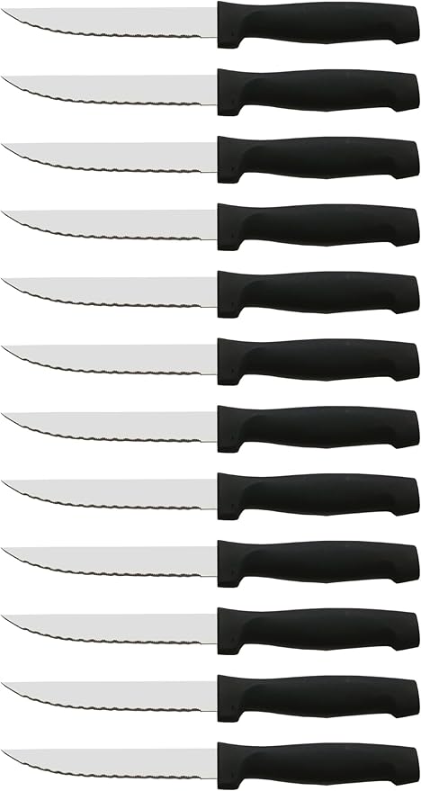 • ✅ SET PROFESIONAL DE 12 CUCHILLOS DE MESA – Incluye 12 cuchillos con hoja serrada de 11 cm, ideales para carne, pescado, verduras y uso diario.