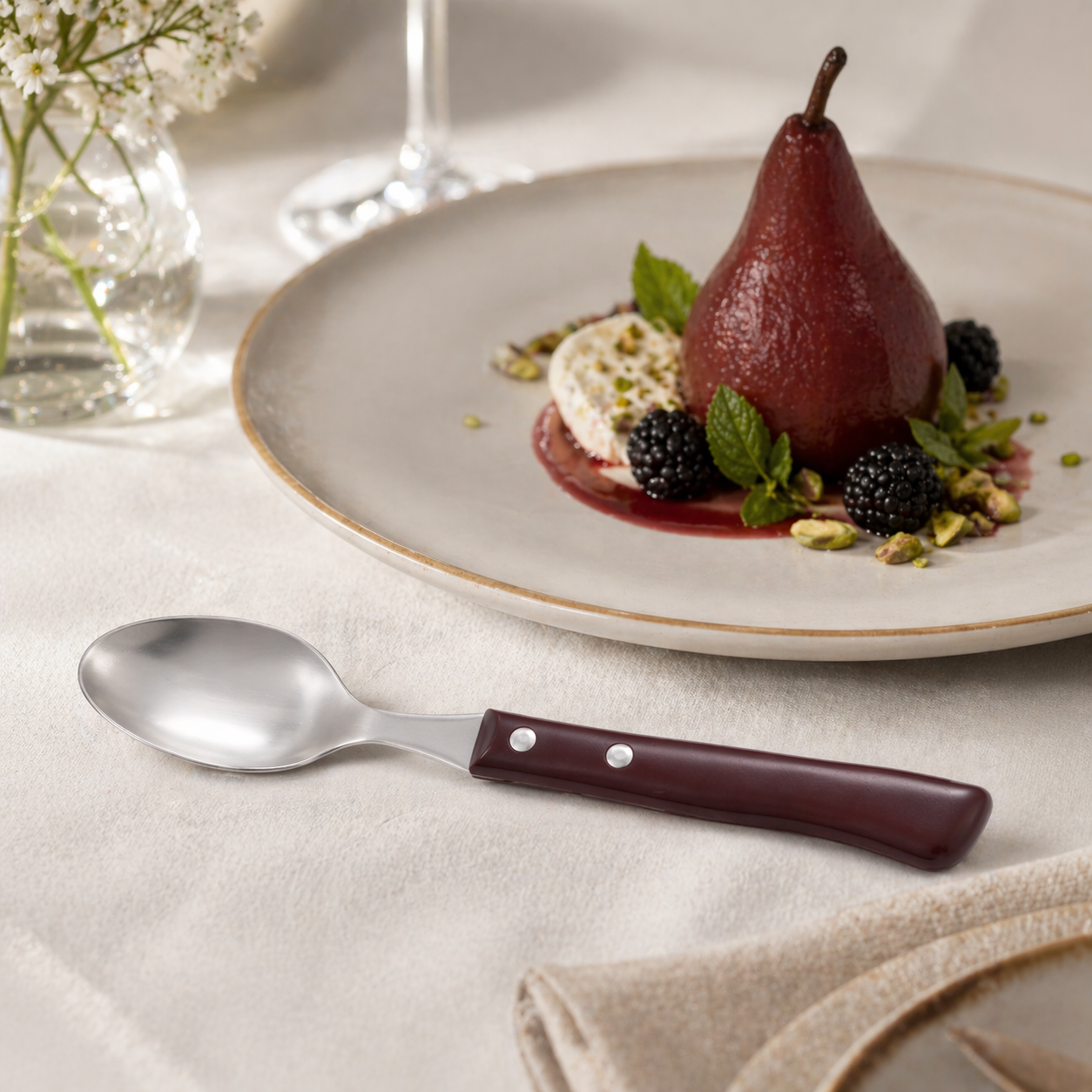 Disfruta de una combinación perfecta de tradición y funcionalidad con las cucharas de mesa Cuperinox EcoWood Series. Su hoja de acero inoxidable garantiza resistencia y durabilidad, mientras que su mango imitación madera ofrece un agarre cómodo y elegante. Un complemento esencial para tu vajilla, ideal para el día a día o eventos especiales.