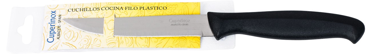 Descubre el equilibrio perfecto entre funcionalidad y durabilidad con los cuchillos de cocina Cuperinox Essential Series. Su hoja de acero inoxidable de alta calidad ofrece un corte preciso y resistente al desgaste, mientras que su mango ergonómico de plástico negro garantiza un agarre seguro y cómodo.
