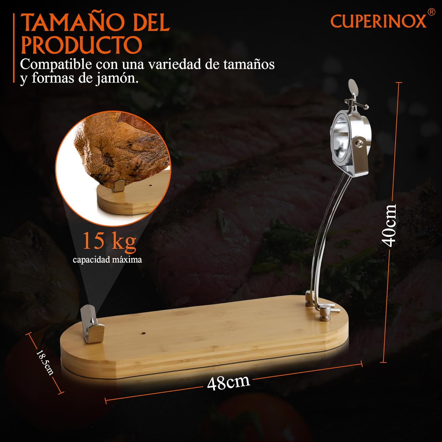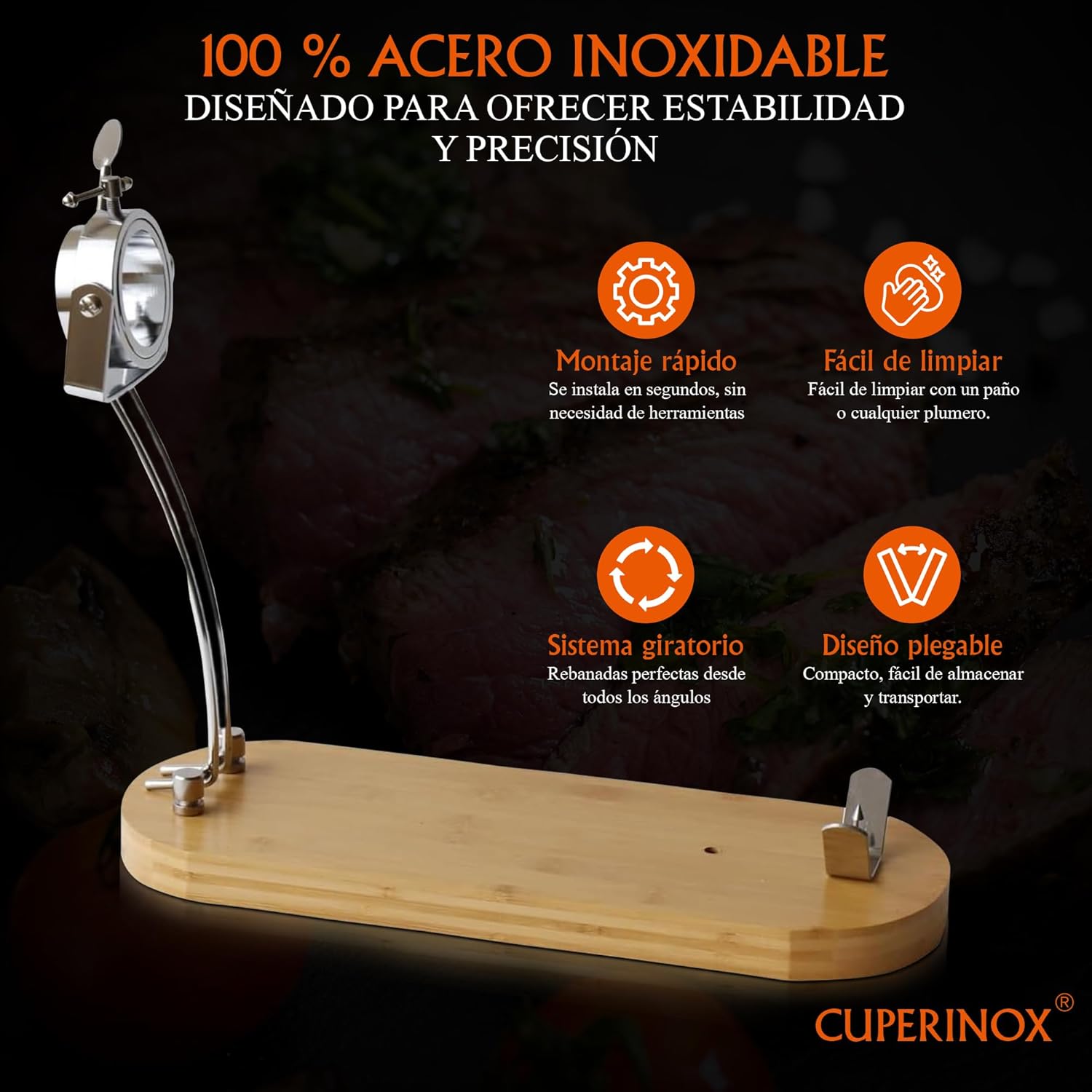 El soporte jamonero con base de bambú combina resistencia, estabilidad y diseño elegante para ofrecer una experiencia de corte profesional
